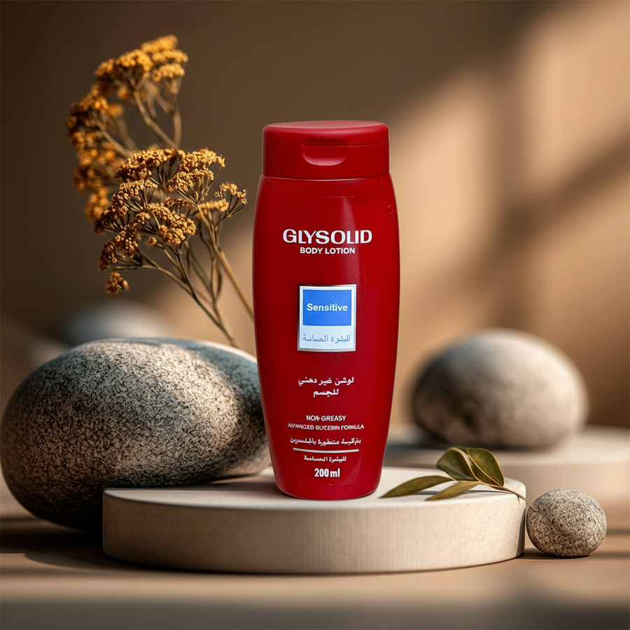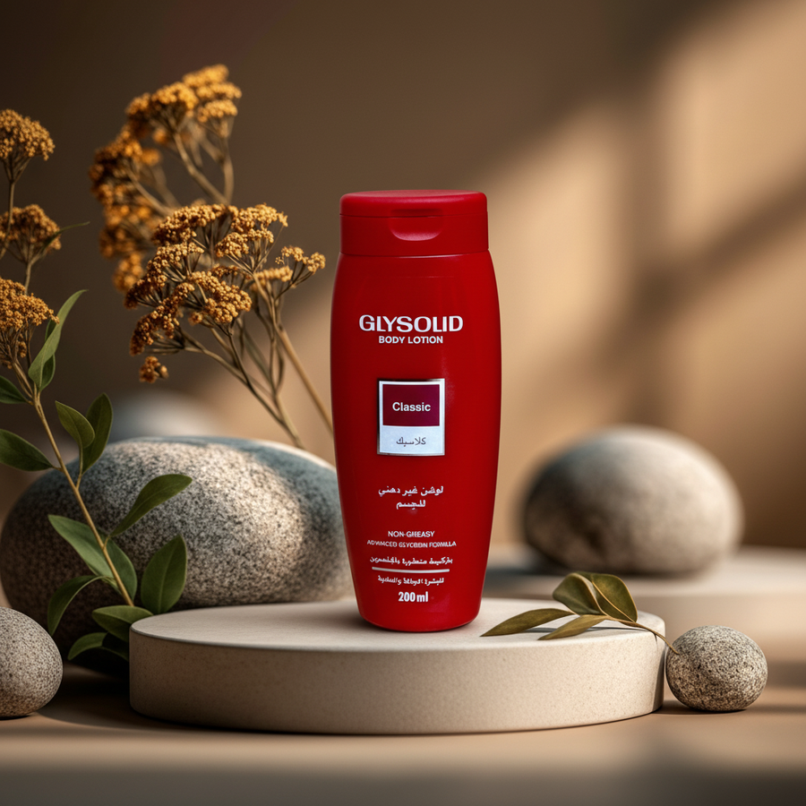 Glysolid Body Lotion لوشن مرطب للجسم يرطّب البشرة بعمق، يحمي من الجفاف، ويمنح نعومة ومرونة تدوم طويلًا بتركيبة غنية مناسبة للبشرة الجافة.